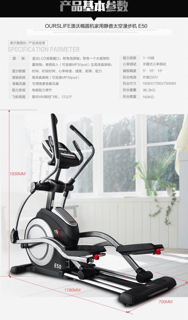 | 型號 | 澳沃ourslife橢圓機E50 | ||