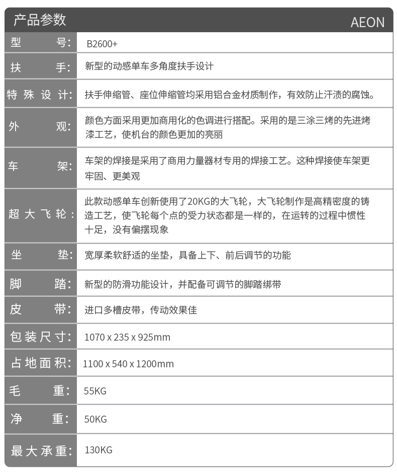 | 型號 | AEON正倫B2600+商用動感單車 | ||